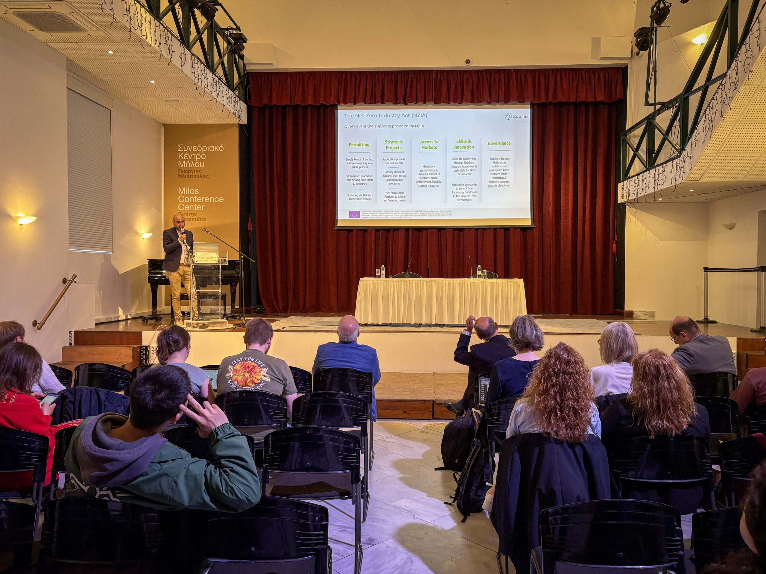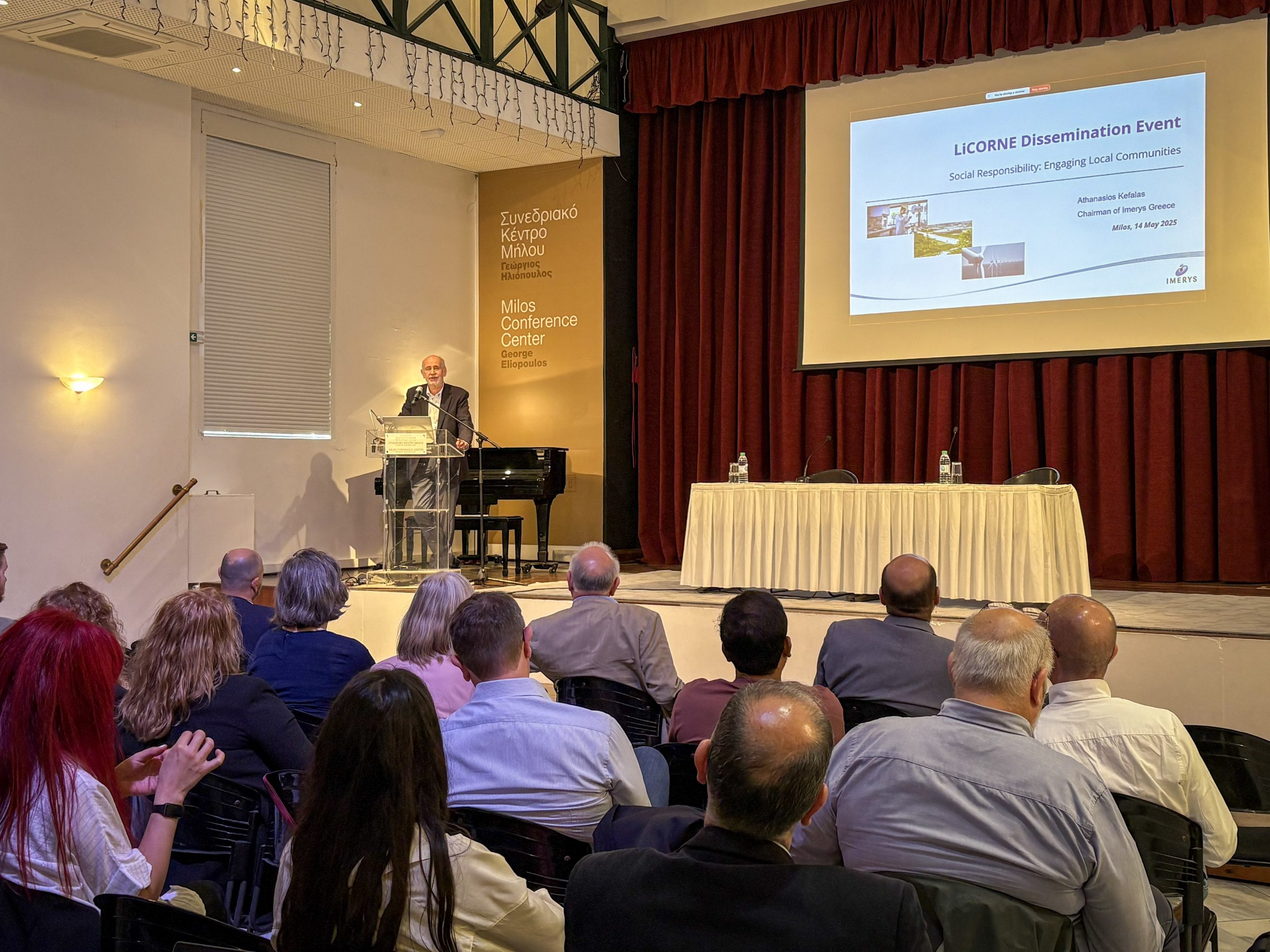 A large group of people arriving on 15 May to Milos island was gathering at Adamantas Conference Centre for the LiCORNE Dissemination Event. A homogenous group of participants, both local authorities and stakeholders from all conrners of Europe, some privileged and attending in person, others online, opened up the floor for discussions around innovative approaches for sustainable extraction of critical raw materials (CRMs) and the role of geothermal fields.