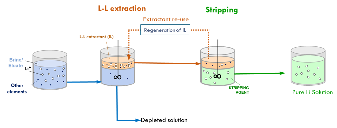 Liquid-liquid extraction & stripping process for the recovery of Li from brines and spodumene leachates © TECNALIA